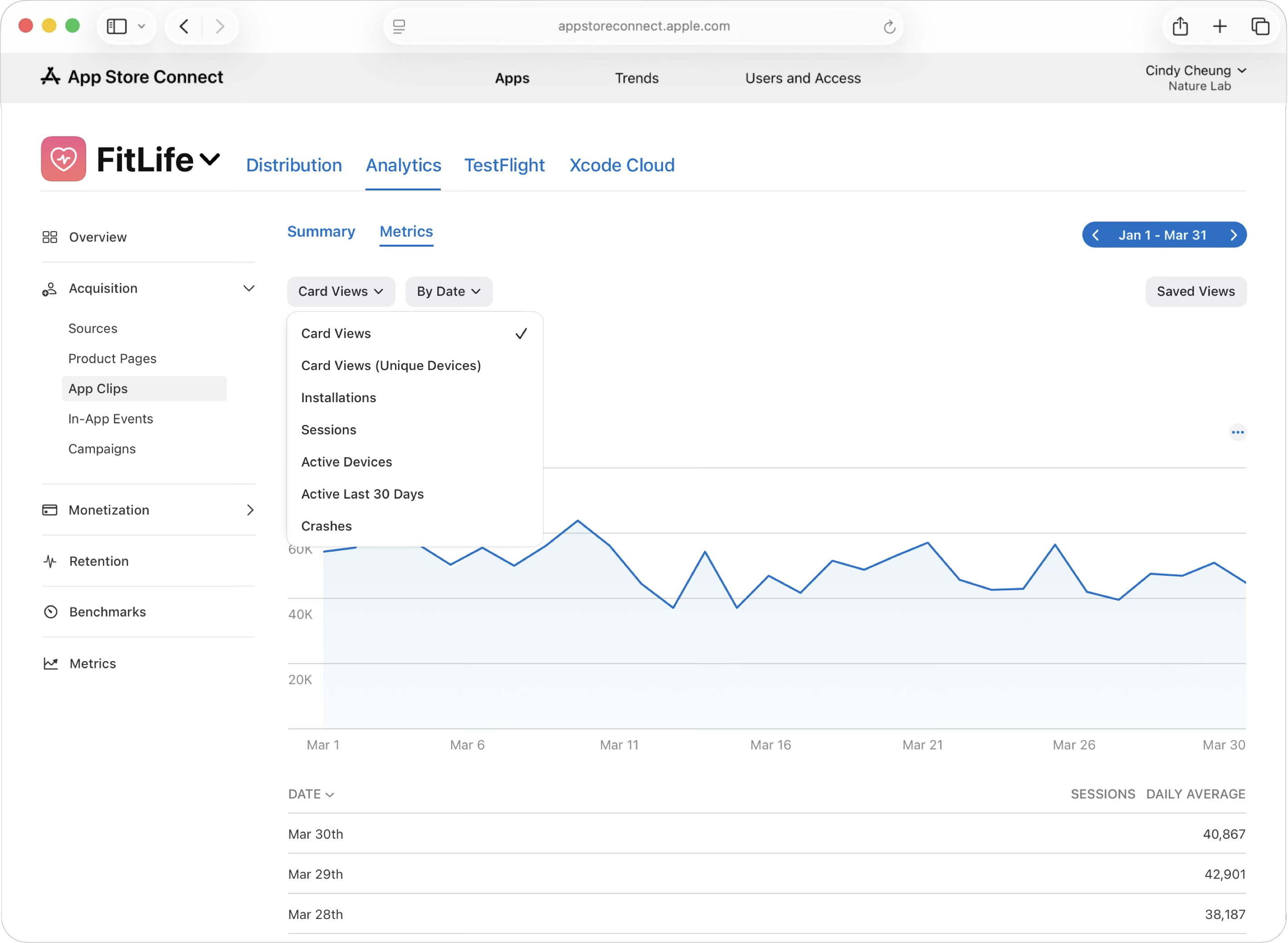 Discovery: View App Clip Card Views and App Clip Card Views (Unique) to discover how many users are invoking your App Clip.