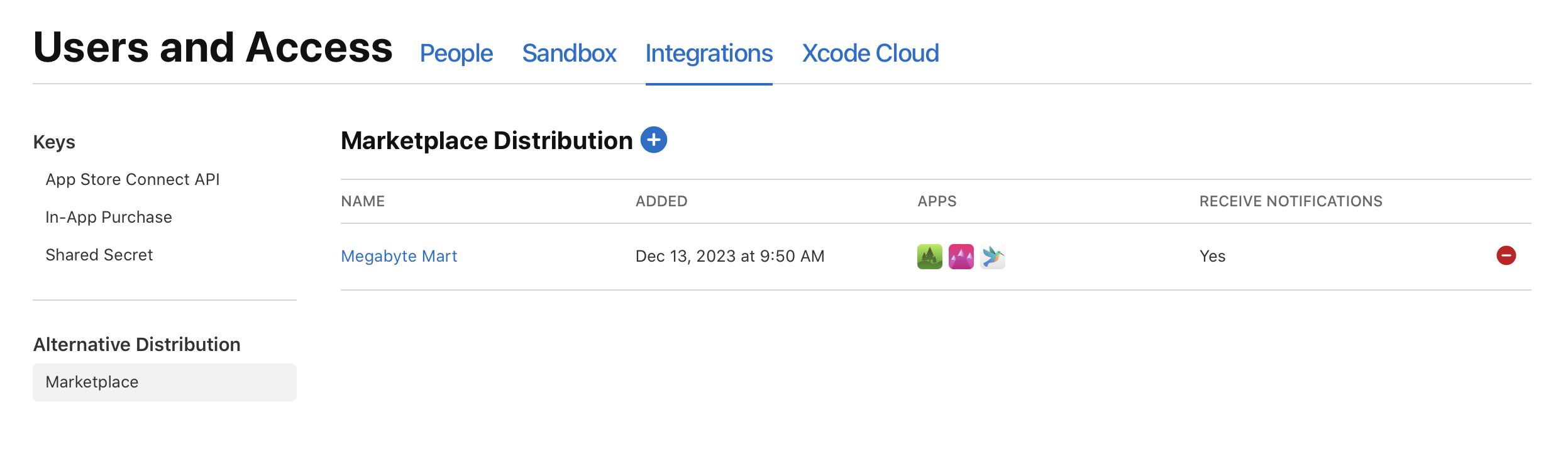 Select whether you want Apple to notify this marketplace when there are certain changes to your apps — for example, when a new alternative distribution package is generated — and click Add.