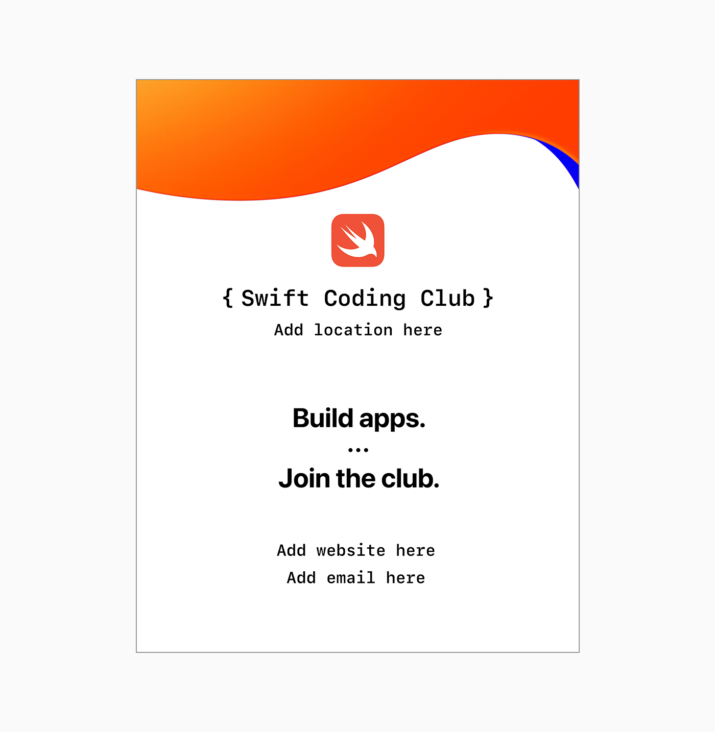 Let your friends, classmates, and other students know about your Swift Coding Club.