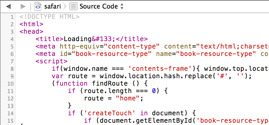 Source Code reads the page’s HTML as if you opened it in a text editor. The source code reflects your HTML structure before any JavaScript is loaded. While the contents can’t be edited, it’s useful to see the HTML Safari receives from the server.
