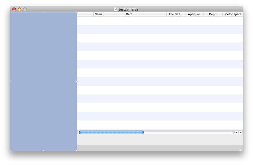 When you add or remove cameras, the browser view updates to show the changes. Select a device and you can view its contents and download images. You can download to a folder, directly to an application, or to an Applescript. You can select a list view or a matrix view of the thumbnails. You can control the thumbnail size with the provided slider. You can also rotate or or delete images using the buttons provided.