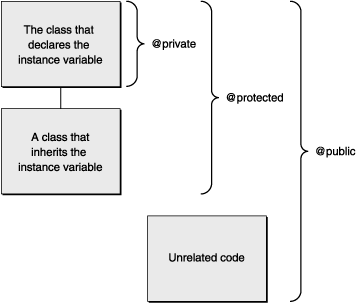 To limit an instance variable’s scope to just the class that declares it, you must mark it @private. Instance variables marked @private are only available to subclasses by calling public accessor methods, if they exist.