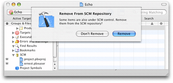 To remove the file from your local copy of the project, click Delete References & Files. The Remove From SCM Repository dialog appears, shown in Figure 22-7.