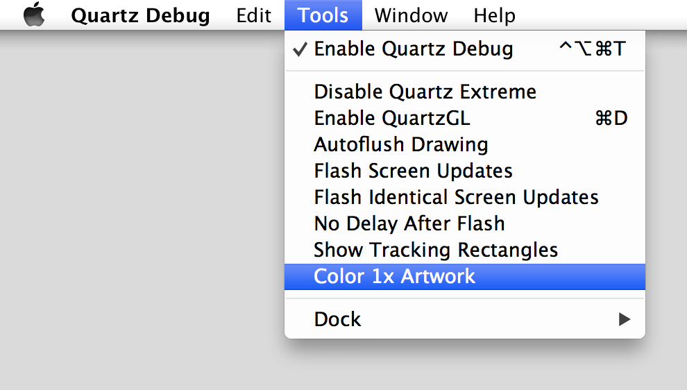 Figure 5-3  The tinting option in the Quartz Debug Tools menu