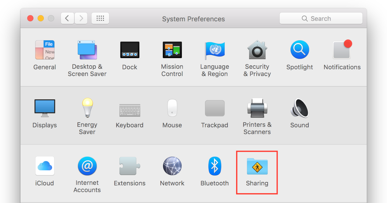 Press the Option key and click Sharing. Don’t release the Option key yet.
