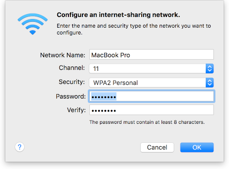 Click Wi-Fi Options, and configure the network name and security options for your network.