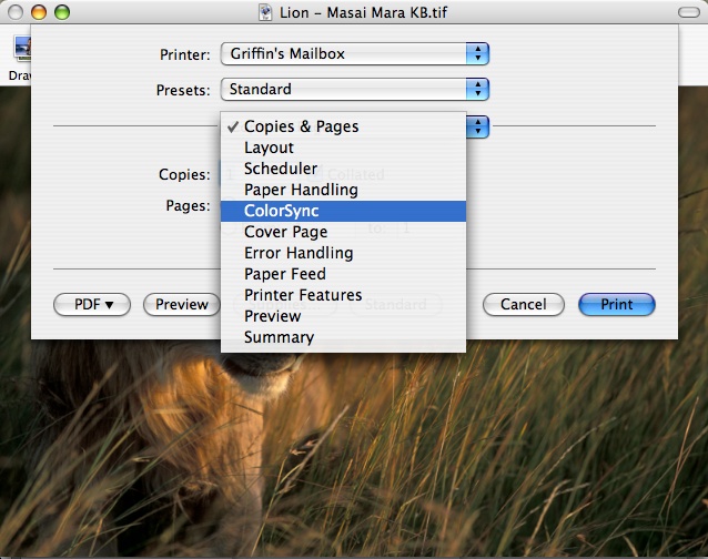 Here's a diagram showing how ColorSync fits into the Mac OS X architecture: