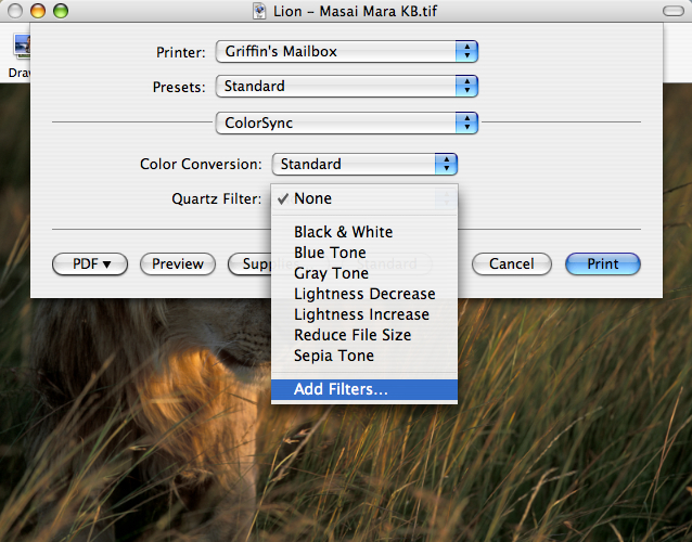 New changes to Color Management in Mac OS X 10.4 Tiger have resulted in a tighter and more powerful integration between the Quartz and Printing graphics systems. However, in order for the Quartz and Printing graphics systems to work at peak performance and reliability it was necessary to restrict them to use only the Apple CMM.
