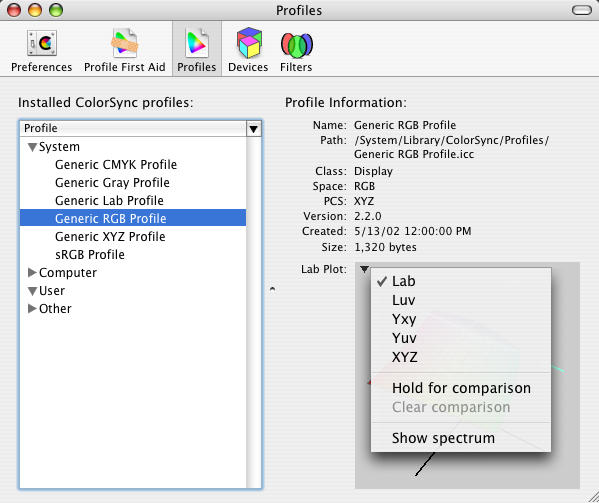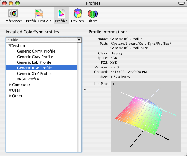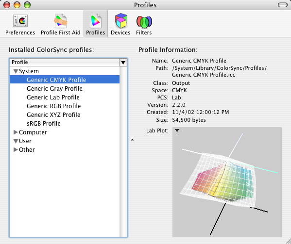 You could also use the Mac OS FindFolder API as an equivalent technique. However, one of the key features of Mac OS X is it is designed to be fully network and multi-user savvy. For this reason, there is no longer just one location where profiles can be stored, but several. There is a special location within the Mac OS X System folder for profiles: