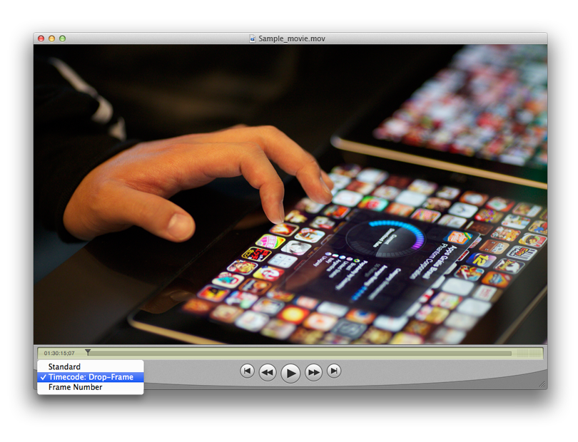 You may also toggle the timeline display as desired as shown in figure 2. The display says Drop-Frame in figure 1 because the format description we created to represent the type of sample we wrote in listing 3 contained the kCMTimeCodeFlag_DropFrame flag and therefore the timecode media sample is being interpreted as 29.97 drop-frame.